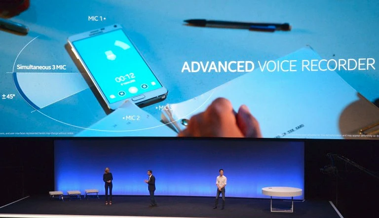 Samsung trang bị 3 microphone khử tiếng ồn cho Note 4, có thể ghi lại âm thanh từ các hướng khác nhau với bitrate 250+ kbps. Như vậy, Note 4 là một trong các “dế” ghi âm tốt nhất hiện nay trong khi iPhone 6 Plus chỉ gi âm mono khi quay video.