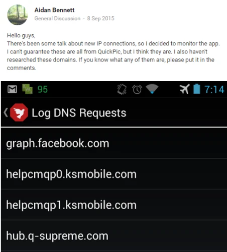 QuickPic là trình quản lý hình ảnh có giao diện tương đối đơn giản và dễ sử dụng, thường xuyên được cập nhật đều đặn. Tuy nhiên, ứng dụng này đã được Cheetah Mobile mua lại vào hồi năm ngoái. Ngay lập tức, công ty đã âm thầm tải dữ liệu của người dùng về máy chủ và thông tin này đã được một người dùng Google Plus phát hiện. Bạn đọc quan tâm có thể thay thế QuickPic bằng ứng dụng Piktures.