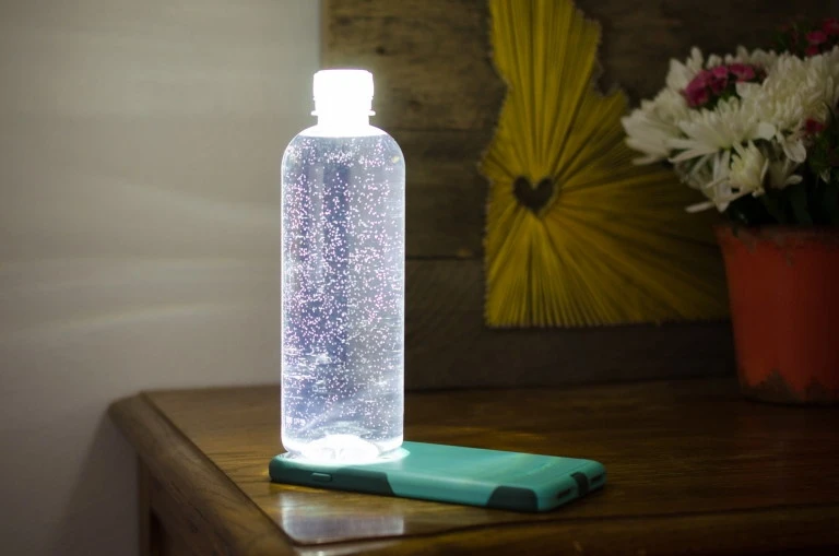 Khi cúp điện, thói quen chúng ta sẽ bật đèn flash của điện thoại lên. Tuy nhiên, bạn hãy thử dùng băng dính để dán điện thoại vào một chai nước xem, việc hướng đèn flash vào chai nước lúc này sẽ phát huy hiệu năng tốt hơn và phòng bạn sẽ sáng hơn đấy.