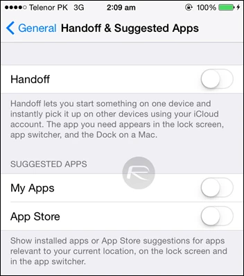 14. Vô hiệu hóa Handoff và Suggested Apps