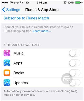Ứng dụng tự động cập nhật lên phiên bản mới nhất là một điểm tiện lợi song cũng là nguyên nhân gây hao pin. Để tiết kiệm pin, truy cập Settings > iTunes & App Store > Updates > Off.