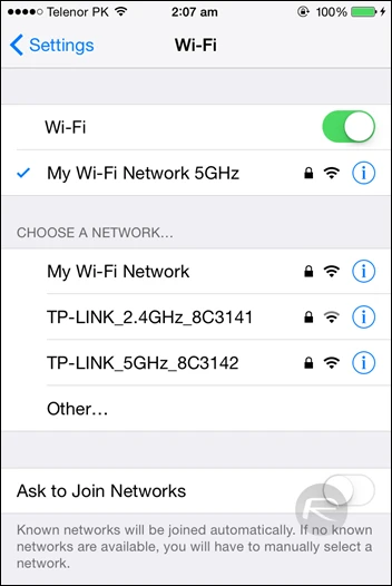 Bạn có thể ngăn thiết bị tự động tìm kiếm mạng Wi-Fi mọi lúc mọi nơi một cách không cần thiết. Truy cập vào Settings > Wi-Fi > Ask to Join Networks và chuyển về OFF.