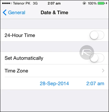 iOS tự động cập nhật thời gian, để làm điều này cần tới vị trí và làm pin hết nhanh hơn. Để vô hiệu hóa, truy cập Settings > General > Date & Time rồi chuyển Set Automatically sang Off.