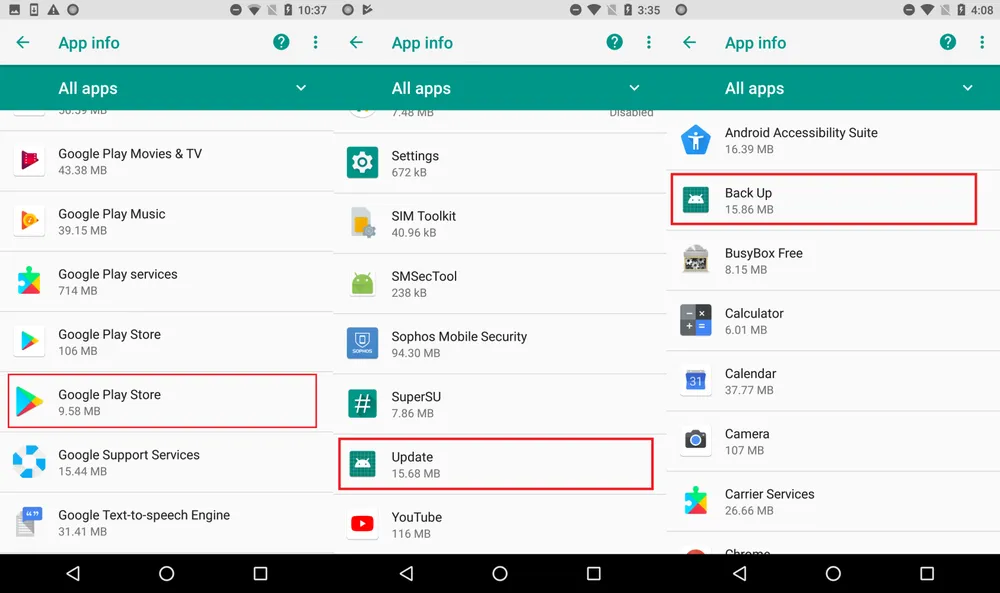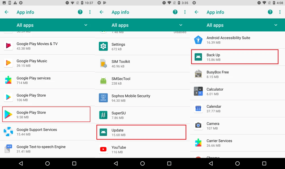 Ngoài việc ẩn mình khỏi hệ thống, các phần mềm độc hại còn giả mạo tên của những ứng dụng, dịch vụ phổ biến như Google Play, Update, Backup, Time Zone Services… để đánh lừa người dùng.