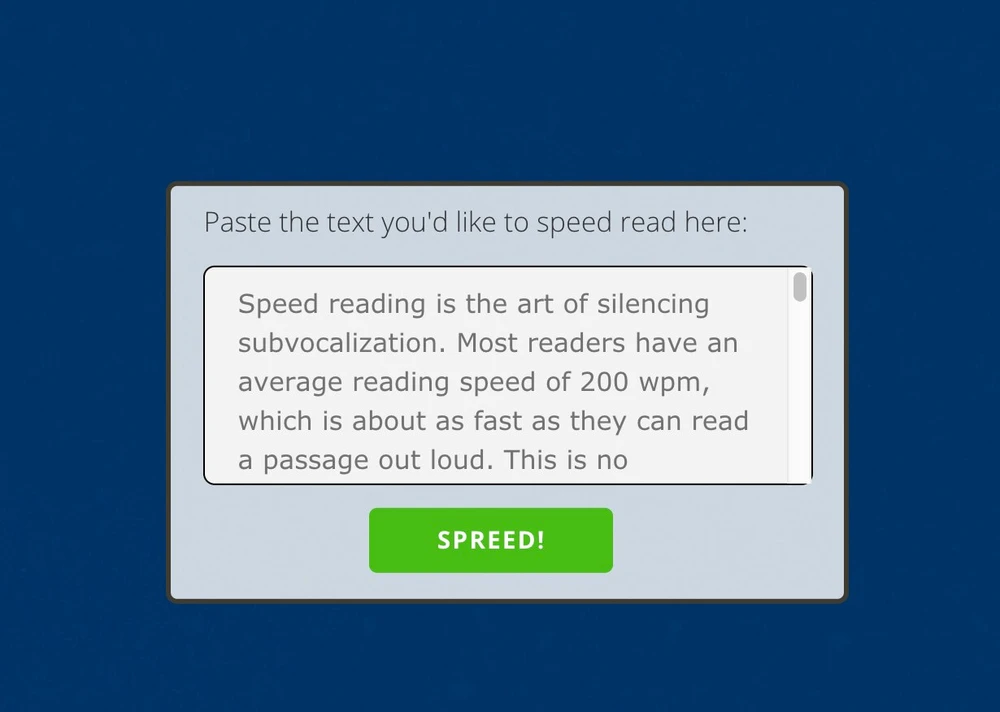 Trang web miễn phí này giúp chúng ta nâng cao kĩ năng đọc và hiểu. Việc bạn cần làm là dán đoạn văn bản cần đọc vào khung trống, sau đó nhấn Spreed và nghỉ ngơi, máy tính sẽ tự động thực hiện mọi việc còn lại.
