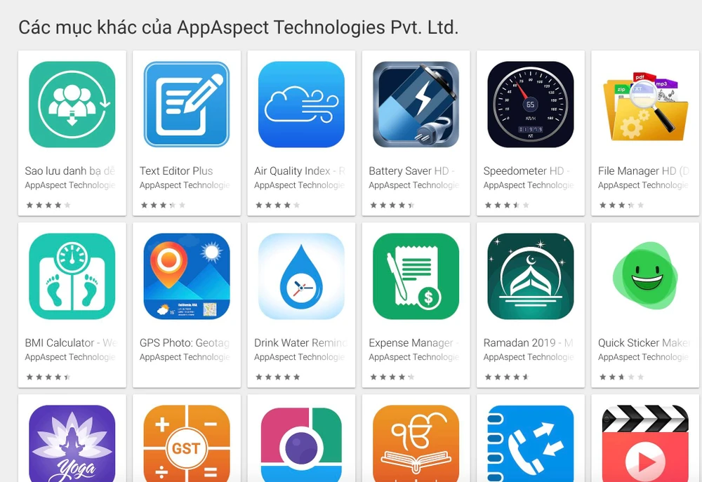 Nếu vô tình cài đặt nhầm các ứng dụng độc hại, chúng sẽ tự động mở trang web hoặc nhấp vào quảng cáo trong nền mà không cần sự tương tác từ phía người dùng. 17 ứng dụng đều được phát triển bởi AppAspect Technologies, một công ty có trụ sở tại Ấn Độ.