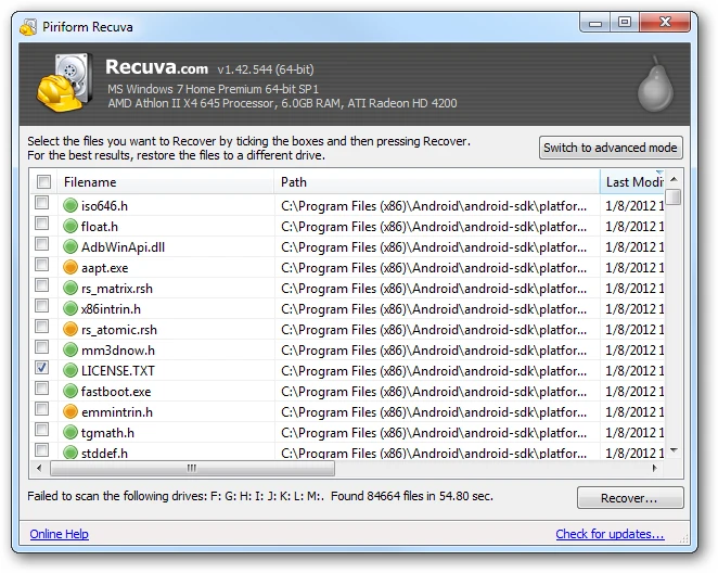 Trong kết quả trả về, bạn chỉ cần chọn các tập tin cần khôi phục rồi nhấn Recover.
