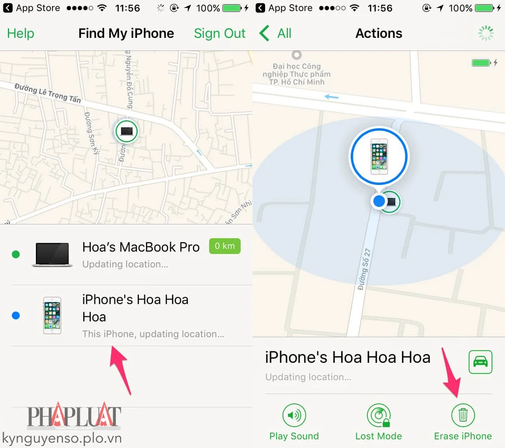 Nếu không có máy tính, bạn hãy tải và cài đặt ứng dụng Find my iPhone (https://goo.gl/vqAjZK) trên một thiết bị khác. Đăng nhập cùng tài khoản iCloud trên thiết bị đang bị vô hiệu hóa. Sau đó sử dụng Find my iPhone để xóa toàn bộ dữ liệu trên điện thoại thông qua tùy chọn Action > Erase iPhone. Cuối cùng, người dùng có thể khôi phục lại dữ liệu từ các bản sao lưu trước đó.