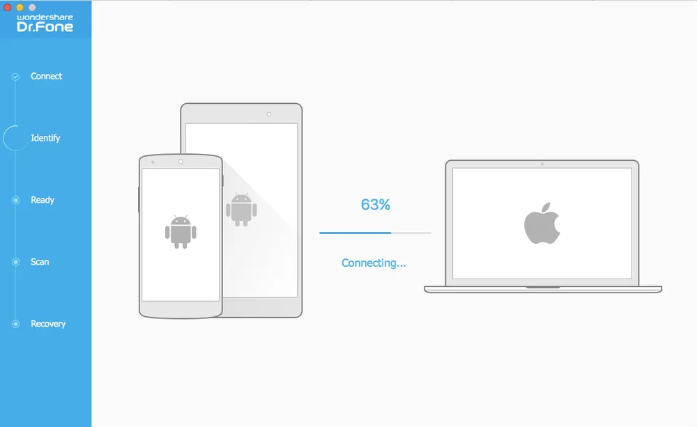 - Bước 1: Đầu tiên, bạn hãy cài đặt ứng dụng Android Data Recovery (Windows/Mac) tương ứng tại địa chỉ https://goo.gl/Ebfz7V, sau đó kết nối smartphone vào máy tính thông qua cáp USB.