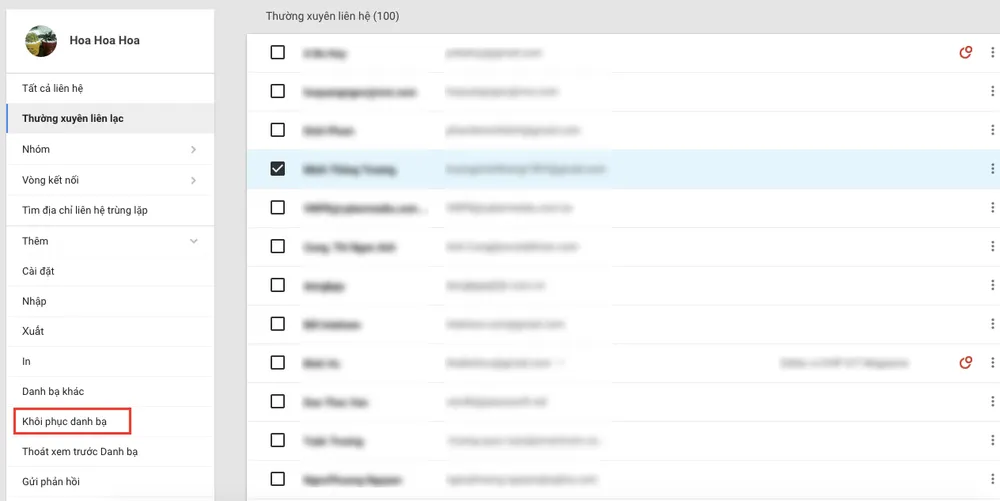 - Bước 2: Toàn bộ địa chỉ liên lạc sẽ được liệt kê tại đây, bao gồm cả những số điện thoại hoặc email mà bạn đã vô tình xóa.
