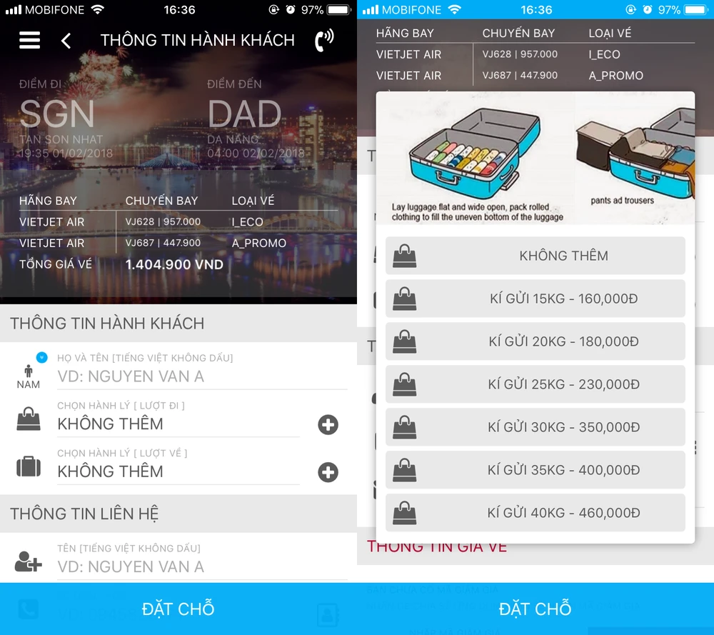 Điền thông tin vé cho chính xác rồi nhấn đặt chỗ. Ảnh: MINH HOÀNG