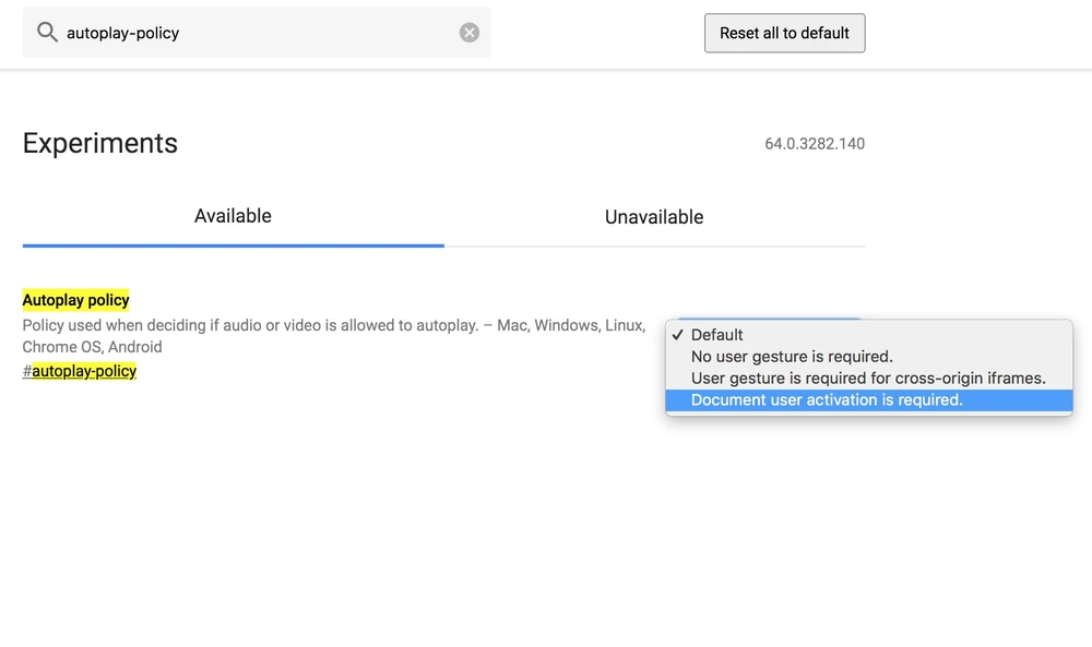 Để vô hiệu hóa tính năng tự động phát video, bạn hãy gõ chrome://flags vào khung địa chỉ rồi bấm Enter. Nhập từ khóa autoplay-policy vào khung tìm kiếm, sau đó thiết lập lại thành Document user activation is required, nhấn Relaunch Now để khởi động lại trình duyệt và áp dụng các thay đổi.