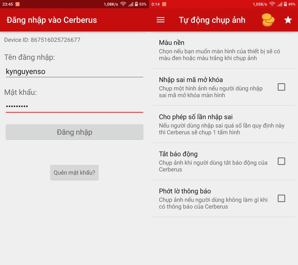 Điều thú vị là ứng dụng sẽ tự động chụp lại hình ảnh kẻ trộm khi họ nhập sai mật khẩu/mã PIN/hình vẽ (pattern) vài lần, tuy nhiên tính năng này chưa được kích hoạt mặc định. Do đó người dùng phải bấm vào biểu tượng menu ở góc trên bên trái và chuyển sang mục Automatic photo capture (tự động chụp ảnh) > Wrong unlock code (nhập sai mã mở khóa) > Failed attempts (cho phép số lần nhập sai).