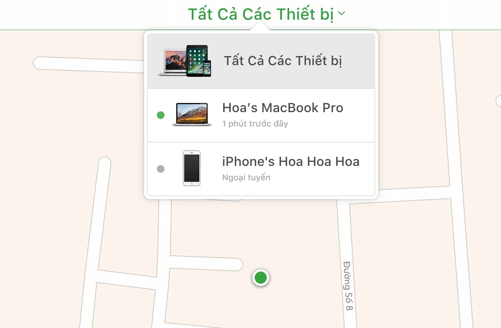 - Bước 3: Tiếp theo, bạn hãy nhấn vào mục All Devices (tất cả thiết bị) và chọn tên thiết bị cần tìm như hình bên dưới. Lúc này người dùng sẽ có ba lựa chọn gồm Play sound (phát âm thanh), Lost mode (chế độ mất máy) và Erase iPhone (xóa iPhone).