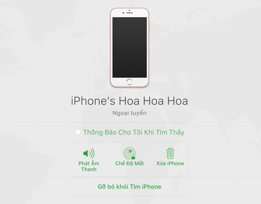 Lưu ý, tính năng Find My iPhone (tìm iPhone) chỉ hoạt động khi thiết bị đang được kết nối mạng, trong trường hợp không có kết nối, bạn vẫn có thể kích hoạt các tùy chọn và khi có kết nối mạng, mọi thứ sẽ được thực hiện tự động.