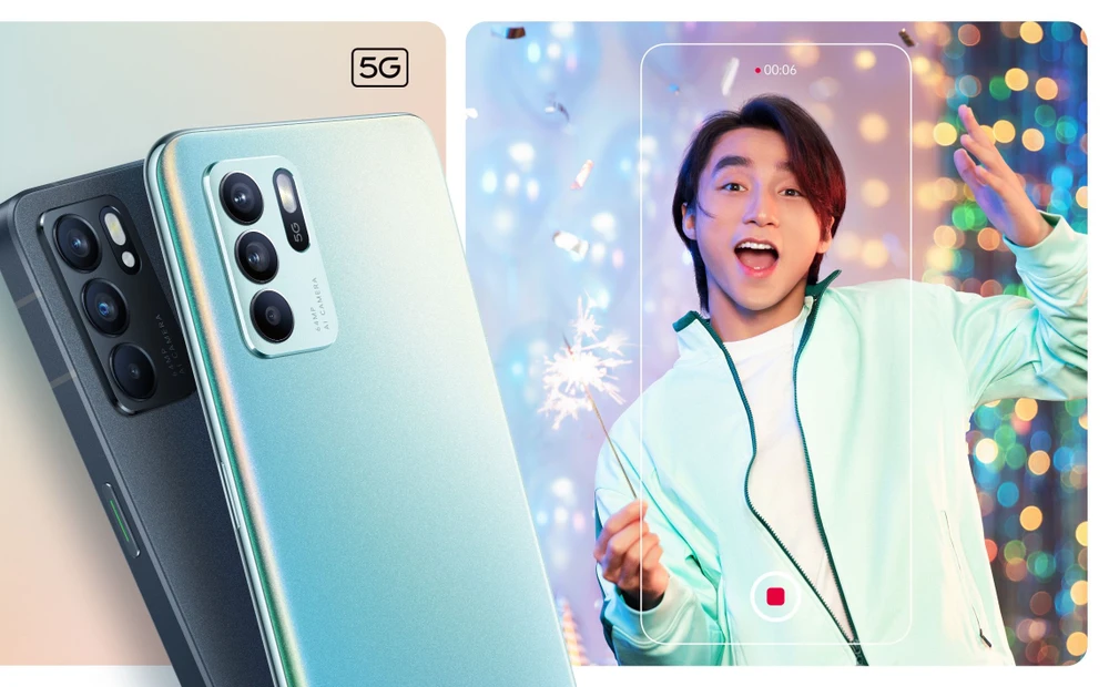 Reno6 5G là phiên bản cao cấp hơn Reno6 Z 5G, máy có màn hình AMOLED 6,4 inch với tốc độ làm mới 90 Hz, giúp hình ảnh hiển thị mượt mà hơn. Đi kèm theo đó là bộ vi xử lý mới nhất của MediaTek, Dimensity 900, dựa trên tiến trình sản xuất 6 nm, 8 GB RAM và bộ nhớ trong 128 GB.