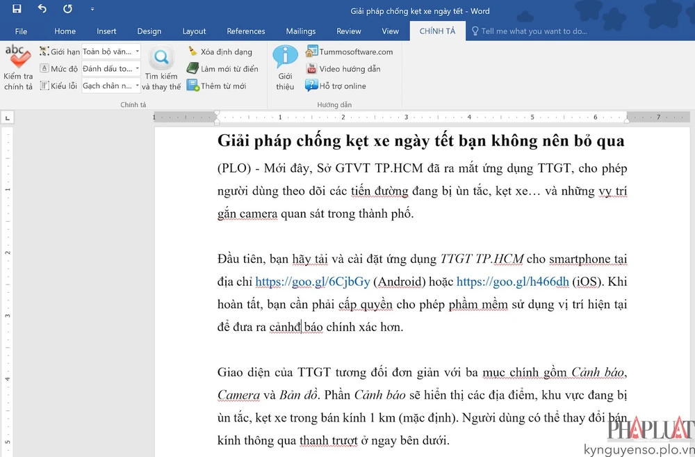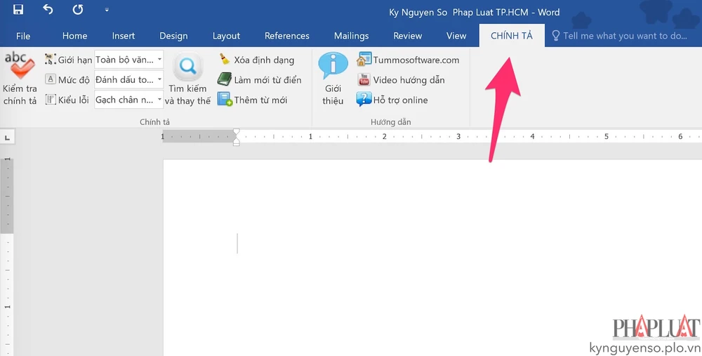 Microsoft Word sẽ xuất hiện thêm mục Chính Tả trên menu nếu cài đặt thành công. Ảnh: MINH HOÀNG