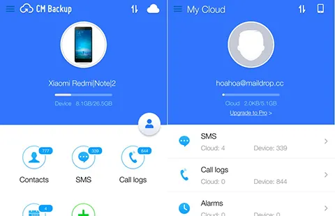 Một ứng dụng danh bạ khác khá hay là CM Backup (https://goo.gl/cgyFFr). Sau khi hoàn tất, bạn hãy đăng ký cho mình một tài khoản miễn phí 5GB. Theo đó, bạn có thể lưu trữ được 3.663 bức ảnh có độ phân giải HD, 400 triệu tin nhắn SMS và 1 tỉ số điện thoại trong danh bạ. Giao diện của CM Backup khá đơn giản, hỗ trợ người dùng sao lưu Contacts (danh bạ), SMS, Call logs…