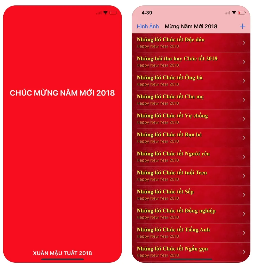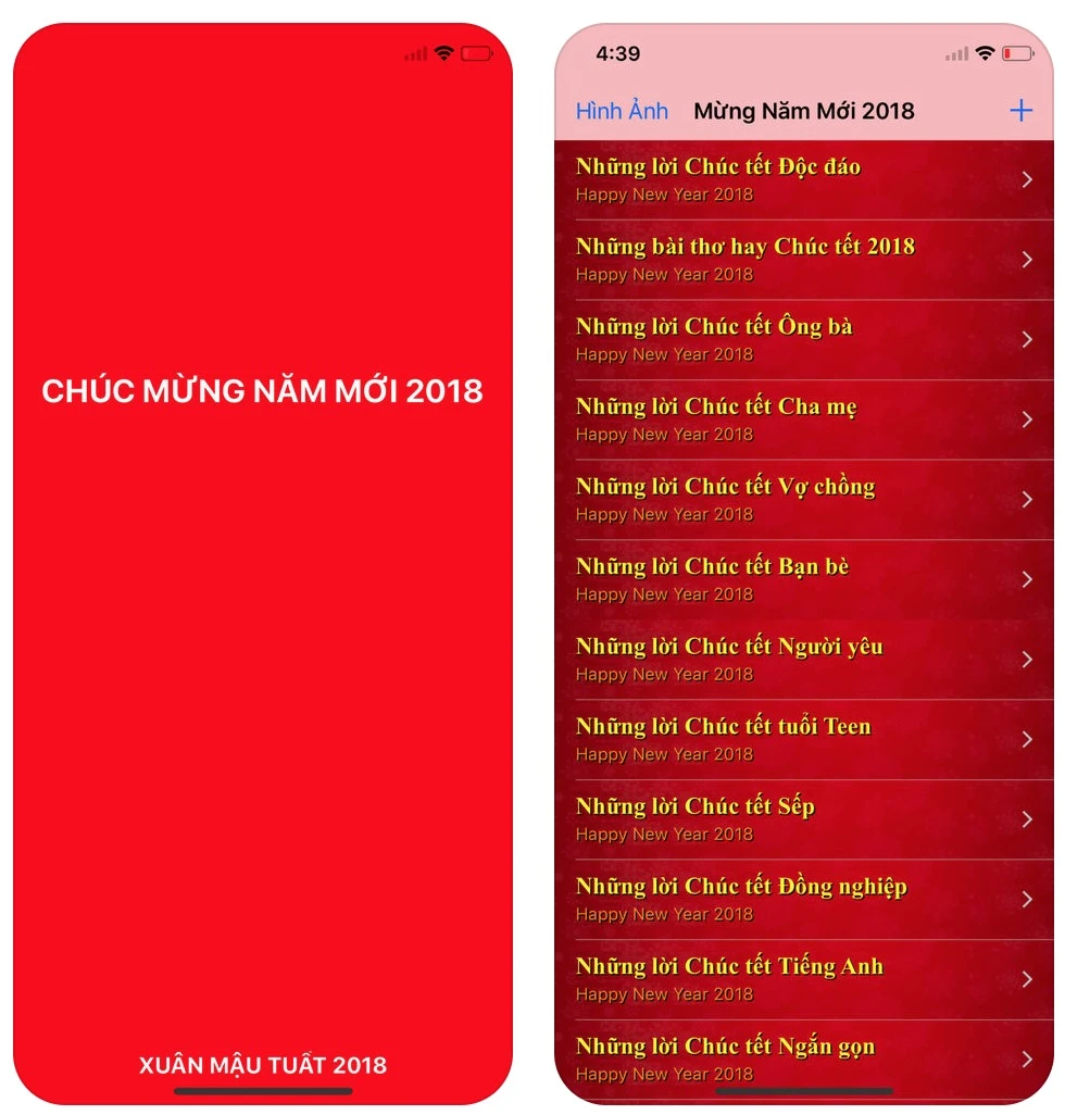 Ứng dụng có giao diện khá đơn giản và chia thành nhiều mục khác nhau, đơn cử như những lời chúc tết dành cho ông bà, vợ chồng, bạn bè, người yêu, tuổi teen, đồng nghiệp… những bài thơ tết hay hoặc các câu chúc bằng tiếng Anh.