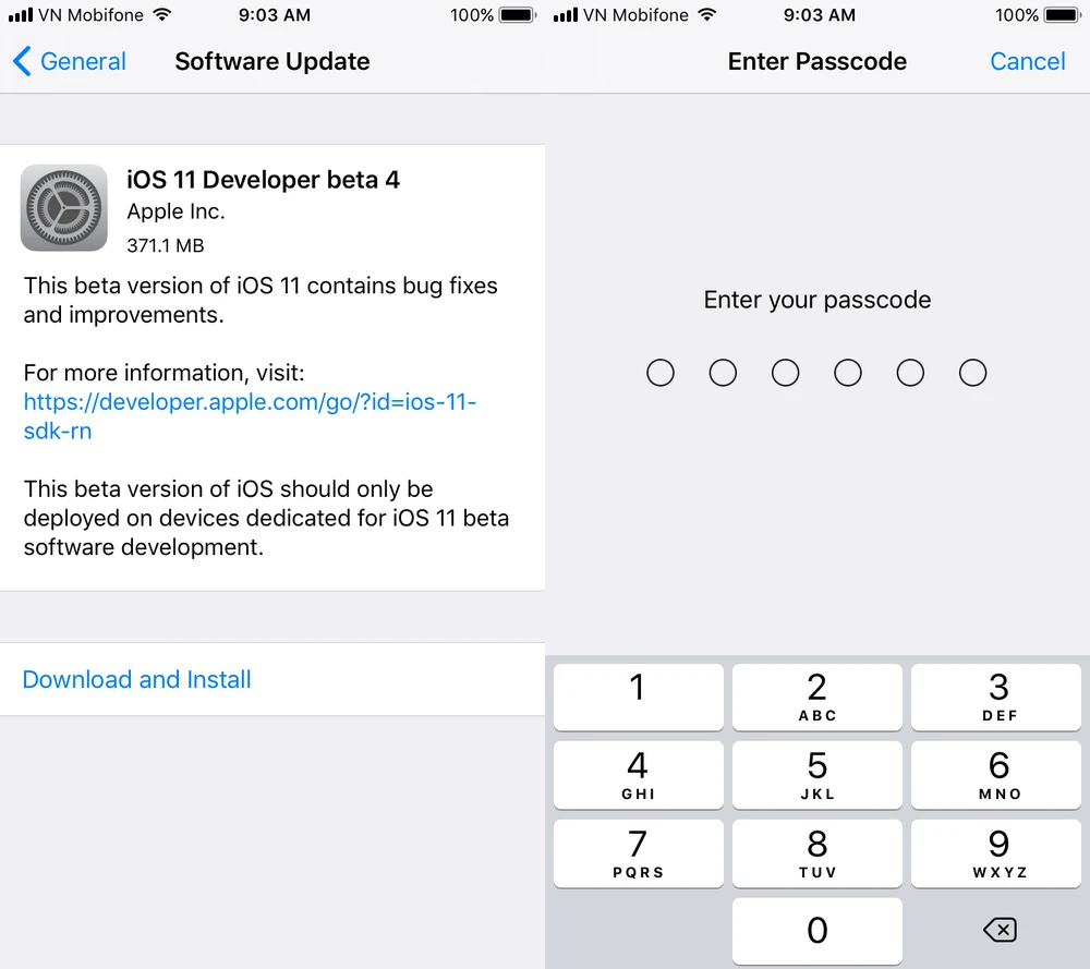 Khi hoàn tất, người dùng có thể nhấp vào tùy chọn Check for Update để kiểm tra bản cập nhật mới hoặc truy cập vào phần Settings (cài đặt) > General (cài đặt chung) > Software Update (cập nhật phần mềm) trên iPhone để tải về iOS 11 Beta 4.