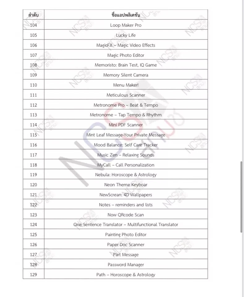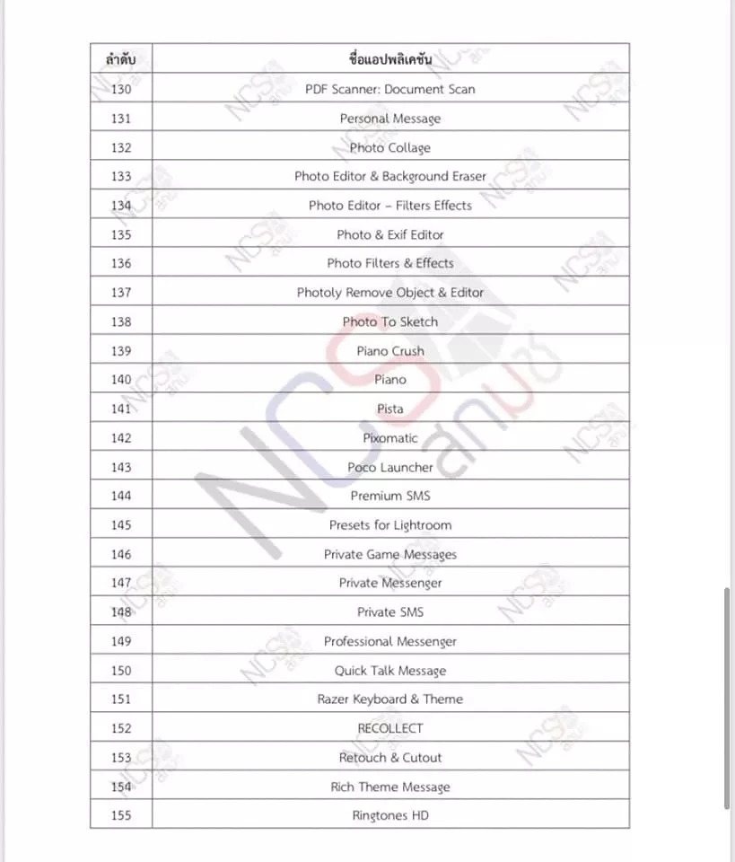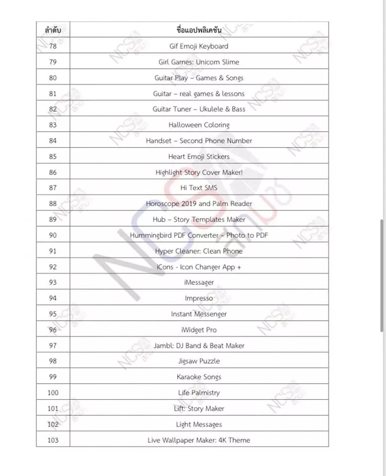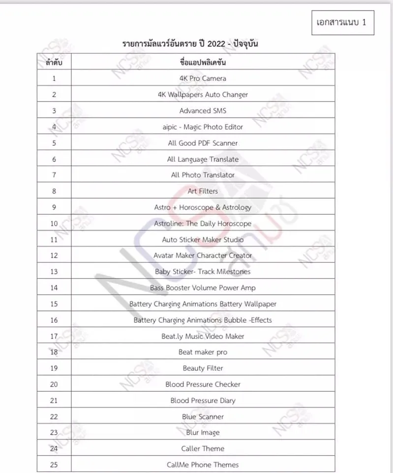 Bộ trưởng DES - Chaiwut Thanakamanusorn nói rằng người dùng điện thoại Android và iOS nên đảm bảo không cài đặt bất kỳ ứng dụng nào bị nhiễm phần mềm độc hại trong danh sách bên dưới. Đồng thời cập nhật thiết bị lên phiên bản mới nhất để tránh bị tin tặc khai thác dữ liệu, và đánh cắp tiền trong tài khoản ngân hàng.