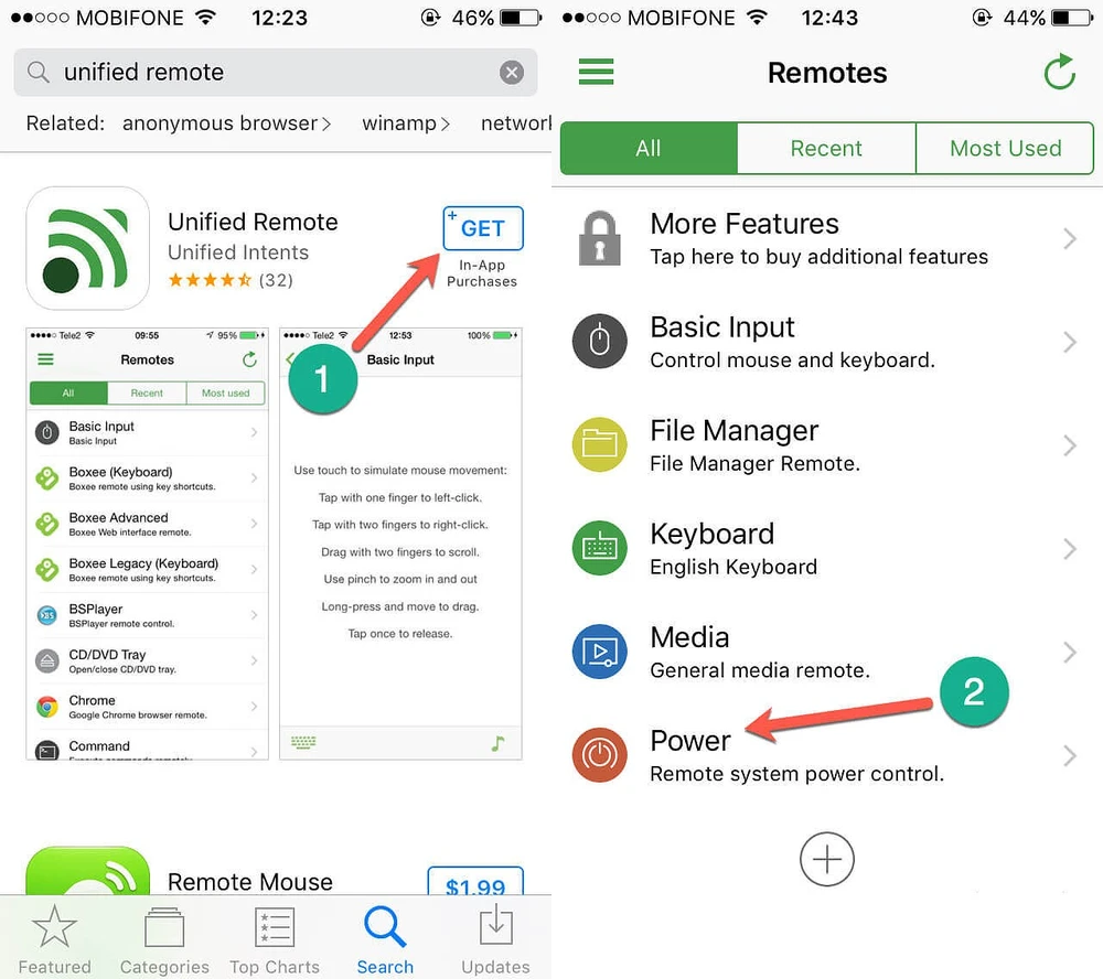 Khi cả hai thiết bị đã nhận diện được nhau, màn hình điện thoại sẽ xuất hiện một loạt tùy chọn gồm Basic Input (biến smartphone thành bàn phím và chuột cho máy tính), File Manager (truy cập file từ xa trên máy tính), Keyboard, Media (mở nhanh các tập tin nhạc, video từ xa) và cuối cùng là Power (tắt máy từ xa). Ngoài ra vẫn còn rất nhiều tùy chọn khác mà bạn có thể khám phá thêm trong quá trình sử dụng.