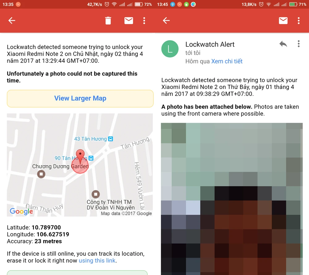 Theo thử nghiệm của người viết, ứng dụng phát hiện vị trí tương đối chính xác, hình ảnh rõ nét và không thể hiện thông báo nên kẻ trộm rất khó phát hiện.