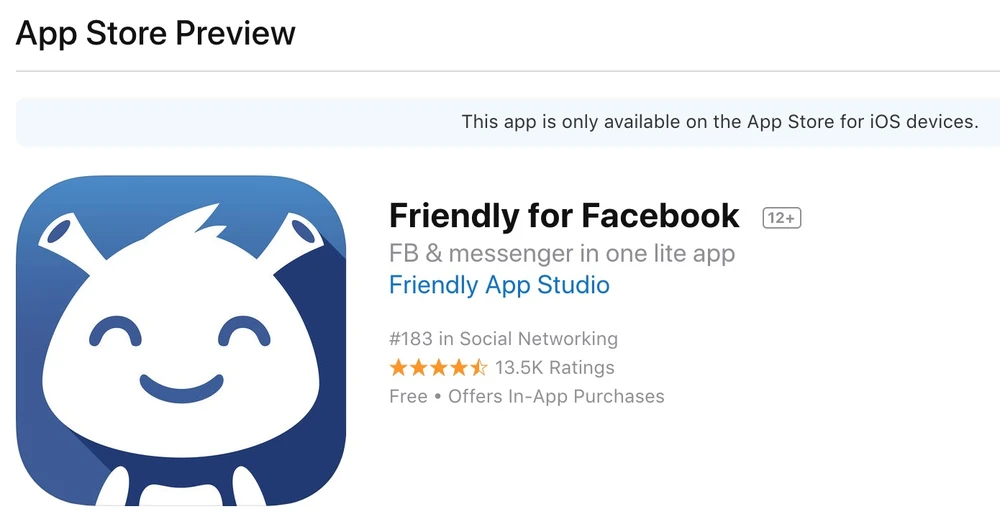 Thay vì phải cài đặt hai ứng dụng Facebook và Messenger riêng lẻ, bạn chỉ cần cài ứng dụng Friendly cho smartphone tại địa chỉ https://goo.gl/zVbf9A (Android) hoặc https://goo.gl/nXheDP (iOS).