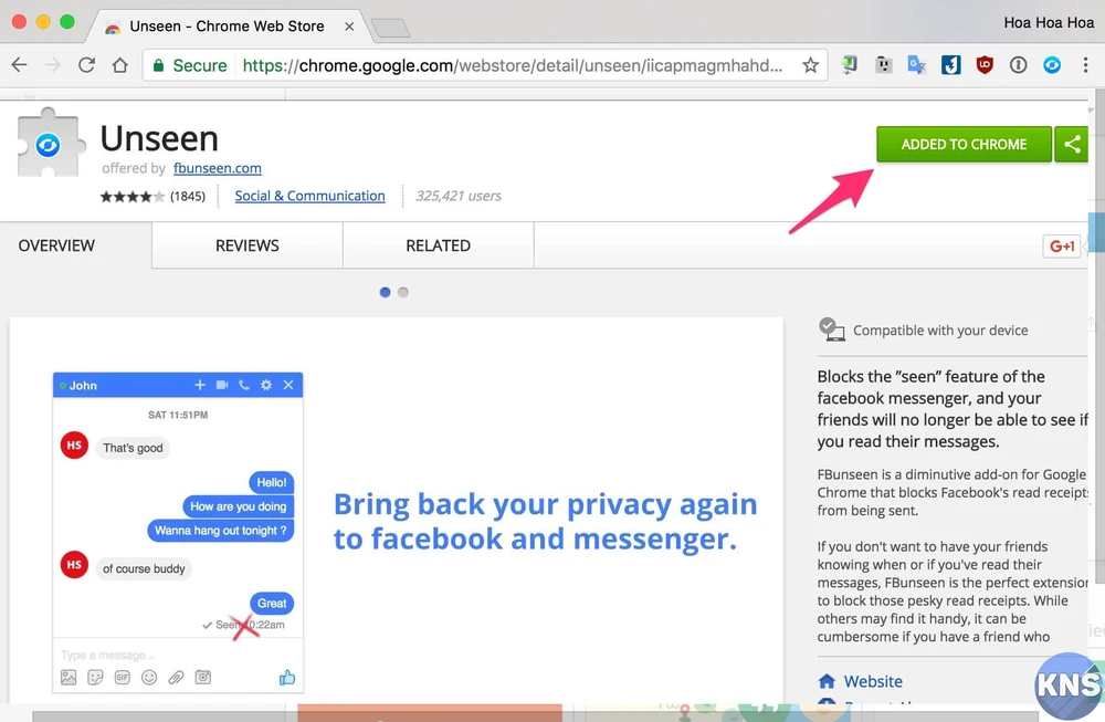 - Bước 1: Đầu tiên, bạn hãy mở trình duyệt Chrome và truy cập vào địa chỉ https://goo.gl/nt3L9i, nhấn Add to Chrome > Add extension để cài đặt tiện ích Unseen.