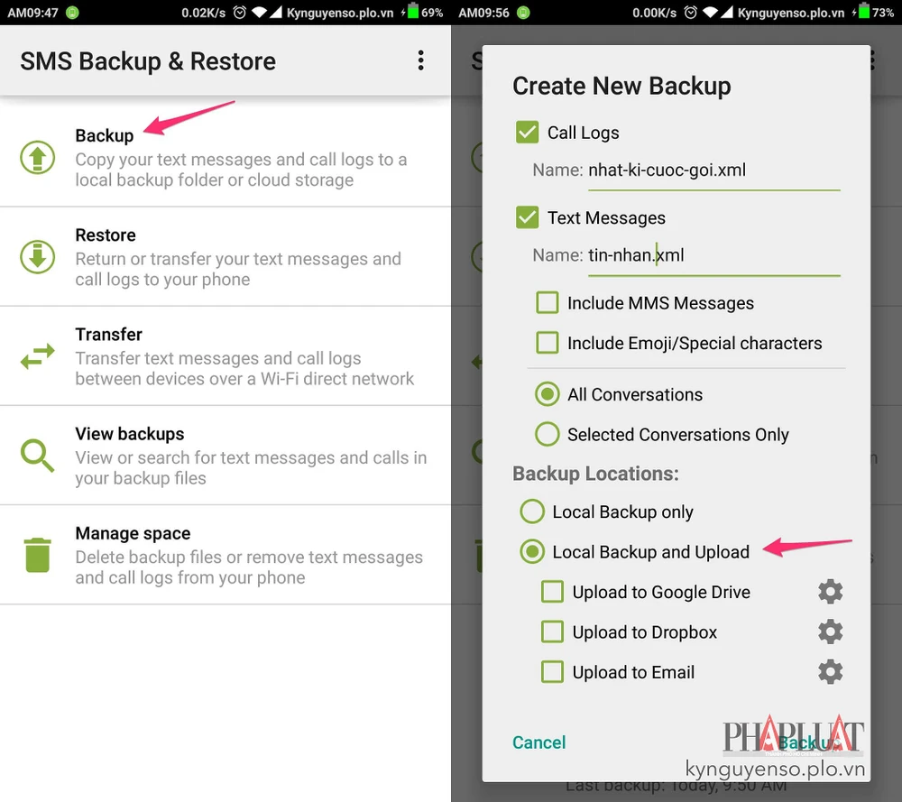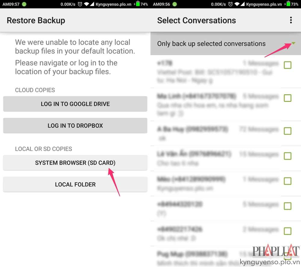 Sau này nếu lỡ tay xóa nhầm các tin nhắn quan trọng, người dùng chỉ cần nhấn vào mục Restore và chọn tập tin sao lưu cần phục hồi. Nhìn chung, chỉ với vài thao tác đơn giản, các tin nhắn và nhật ký cuộc gọi quan trọng sẽ được bảo vệ an toàn trên đám mây, cho phép bạn truy cập và xem ở bất cứ đâu.
