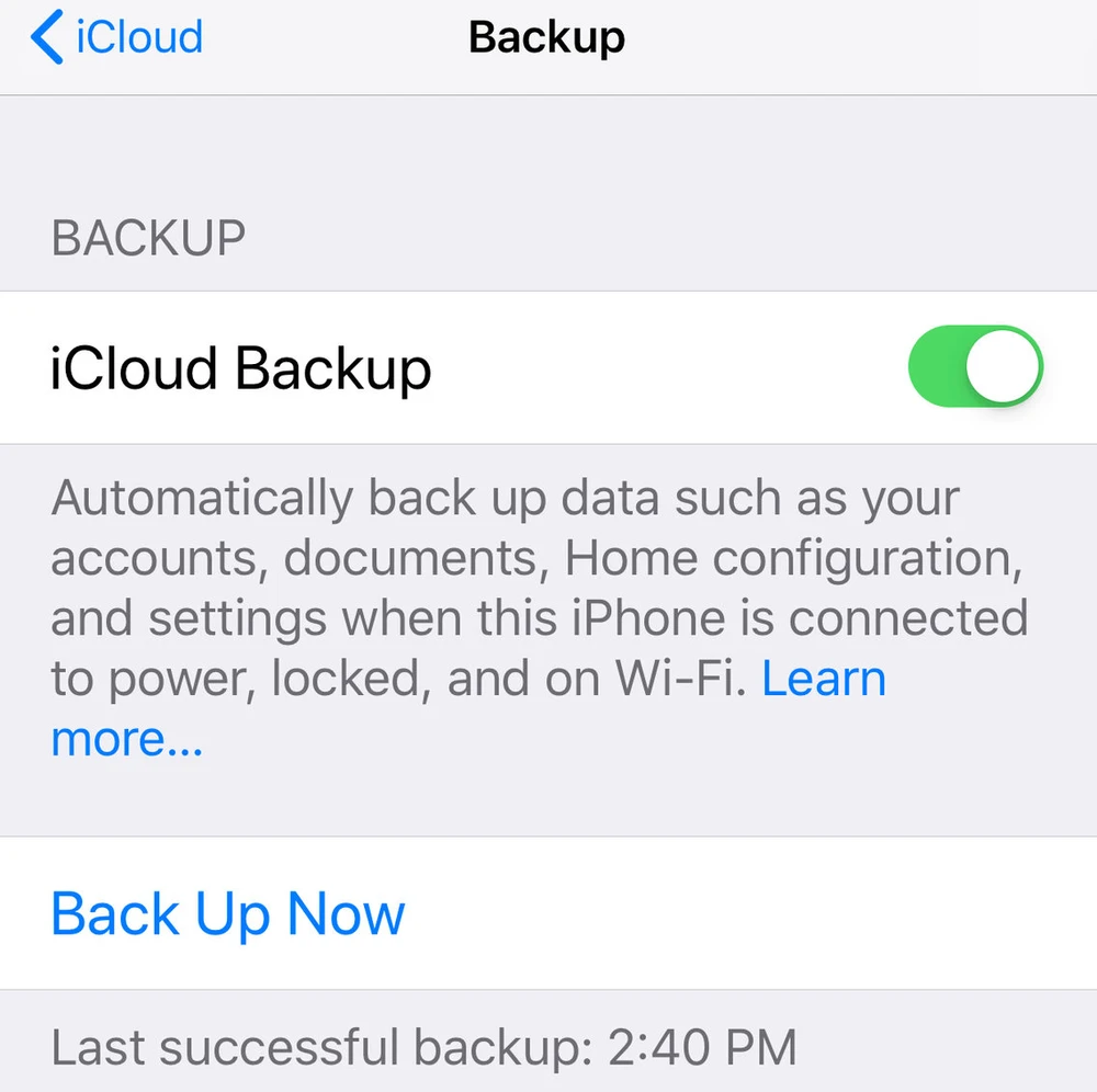 Đầu tiên, bạn hãy truy cập vào phần Settings (cài đặt), nhấp vào tên người dùng và chọn iCloud - iCloud Backup (sao lưu iCloud), nếu điện thoại đã được sao lưu, bạn hãy thực hiện các bước tiếp theo. Ngược lại, người dùng không cần thực hiện tiếp mà hãy chuyển sang phần thứ ba trong bài.