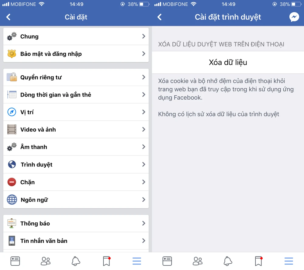 - Bước 2: Tiếp theo, người dùng chỉ cần tìm đến mục Settings (cài đặt) > Account settings (cài đặt tài khoản) > Browser (trình duyệt) > Clear data (xóa dữ liệu).