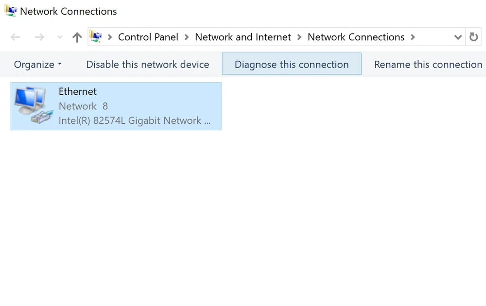 Sau đó kích vào mục Diagnose this connection ở thanh menu bên trên, chờ một lát cho đến khi kết thúc quá trình sửa chữa.