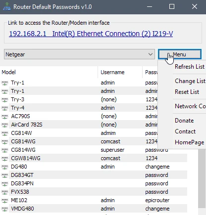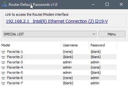 Để khắc phục tình trạng trên, bạn hãy tải phần mềm Router Default Passwords tại địa chỉ https://goo.gl/UezLuxm, tương thích với các thiết bị chạy Windows 7 trở lên. Khi hoàn tất, bạn chỉ cần giải nén và có thể sử dụng ngay mà không cần cài đặt.