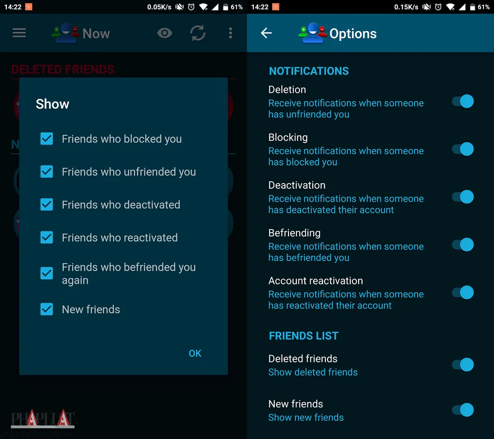 Để chủ động kiểm tra, người dùng chỉ cần nhấp vào nút Refresh (biểu tượng mũi tên xoay vòng) ở góc trên bên phải, nếu có thay đổi, ứng dụng sẽ hiển thị cụ thể. Ví dụ như ai đã unfriend (hủy kết bạn), block (chặn), deactivated (khóa Facebook tạm thời) hoặc new friends (bạn mới)...