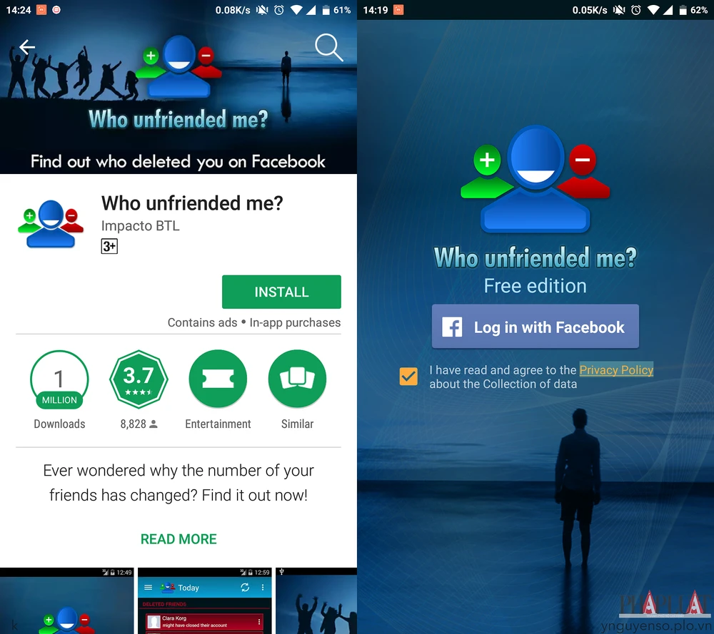 Đầu tiên, bạn hãy tải và cài đặt ứng dụng Who Unfriended Me cho smartphone tại địa chỉ https://goo.gl/bl6BRF, tương thích với các thiết bị chạy Android 2.3 trở lên. Tiếp theo, bạn cần chấp nhận các điều khoản của chương trình và đăng nhập bằng tài khoản Facebook tương ứng. Kể từ lúc này, Who Unfriended Me sẽ tự động theo dõi sự thay đổi liên quan đến số lượng bạn bè trên Facebook.