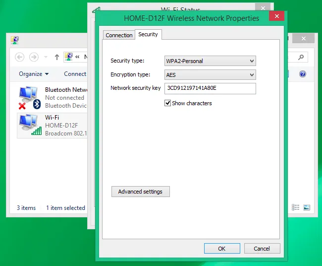 - Bước 2: Tiếp theo, người dùng chỉ cần chuyển sang thẻ Security và đánh dấu chọn vào mục Show Characters, lúc này mật khẩu Wi-Fi sẽ hiển thị ở phần Network Security.