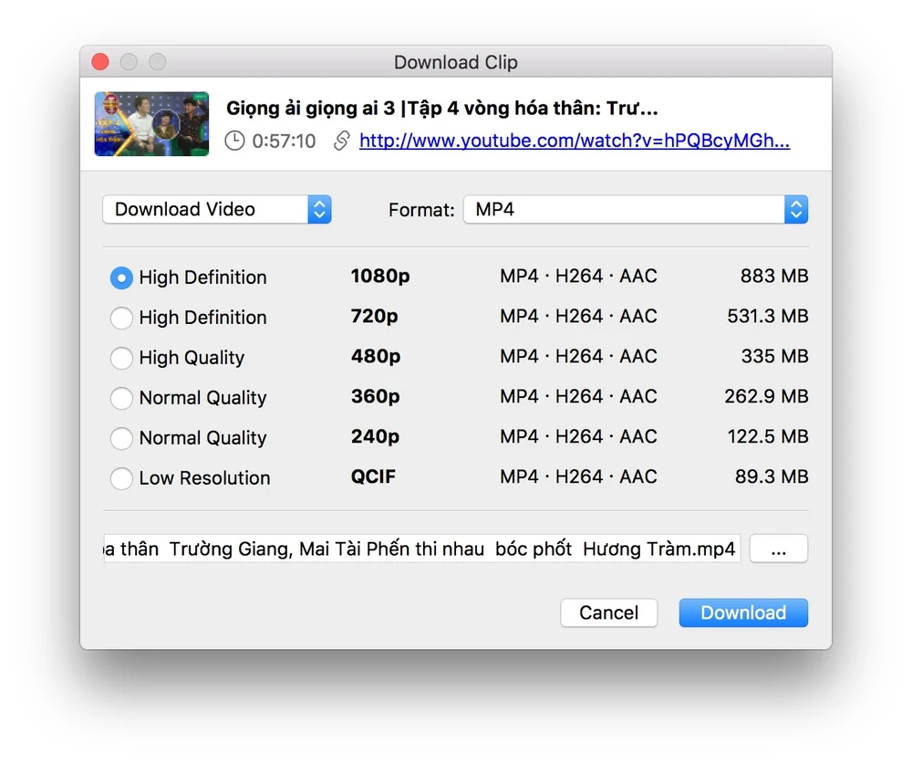 Tiếp theo, bạn hãy lựa chọn định dạng tập tin, chất lượng video, đường dẫn lưu trữ rồi nhấn Download để bắt đầu. Nếu chỉ muốn lấy phần âm thanh bên trong video, người dùng chỉ cần chọn Extract audio.