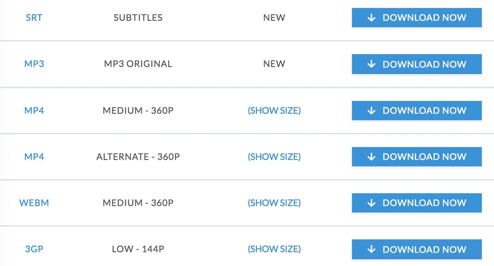Khi 9xbuddy phân tích hoàn tất, bạn sẽ thấy xuất hiện bên dưới là những tùy chọn tải về với nhiều định dạng và chất lượng khác nhau, đơn cử như MP3, MP4 (360p), WEBM, 3GP... Đặc biệt, người dùng còn có thể tải về phụ đề của video dưới định dạng SRT (nếu có). Ngoài 9xbuddy, bạn cũng nên thử dịch vụ Savefrom tại địa chỉ https://en.savefrom.net/, cách sử dụng tương đối đơn giản và tương tự như 9xbuddy.