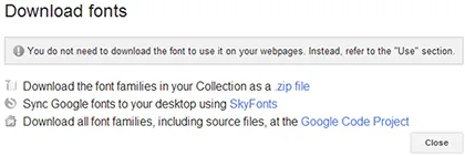Để sử dụng font chữ nào, bạn chỉ cần nhấp vào nút Use là được. Lúc này, nó sẽ cung cấp cho bạn nhiều cách thức để áp dụng font chữ này, chẳng hạn như, nếu bạn muốn tải về thì chọn vào biểu tượng