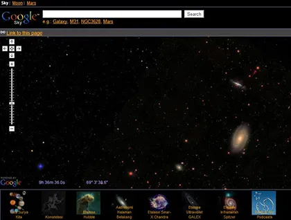 Mặc dù Google Sky chỉ là một phần thuộc Google Earth, nhưng nó vẫn bao gồm các tính năng của Google Maps và Google Earth, cùng với một giao diện riêng trên nền web. Bạn không cần phải đi khắp thế giới chỉ để nhìn được những cảnh quan đẹp mắt, thay vào đó, bạn chỉ cần ngồi một chỗ cùng với sự trợ giúp của Google Sky là được.