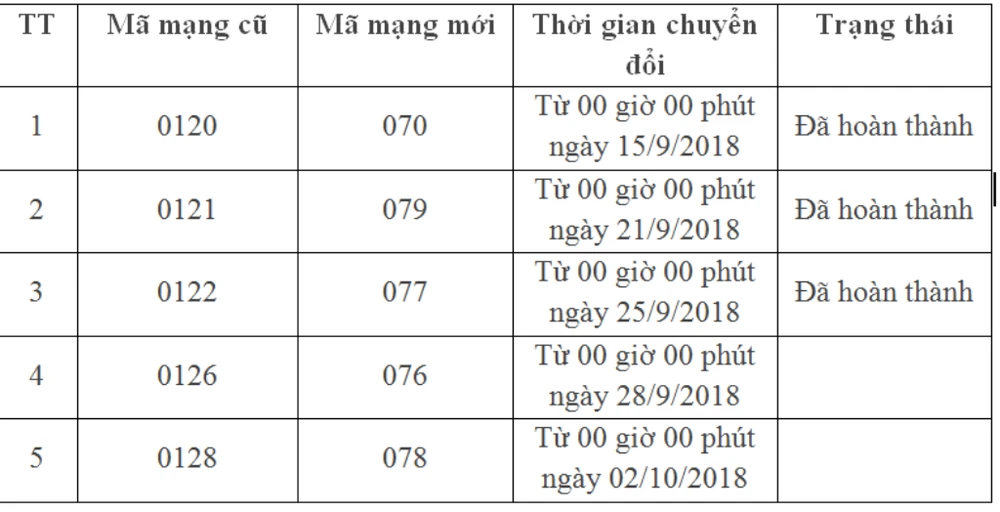 Tính đến ngày 25-9, MobiFone đã thực hiện chuyển đổi thành công ba dải đầu số là 0120, 0121, 0122 lần lượt tương ứng sang 070, 079 và 077. Với tổng số 8,9 triệu thuê bao đã chuyển đổi thành công tính đến thời điểm hiện tại, MobiFone đang hoàn thành các đợt chuyển đổi đúng theo tiến độ quy định của Bộ Thông tin và Truyền thông.