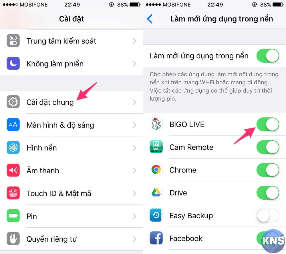 Do đó, người dùng hãy vô hiệu hóa bớt các ứng dụng không cần thiết bằng cách vào Settings (cài đặt) > General (cài đặt chung) > Background App Refresh (làm mới ứng dụng trong nền).