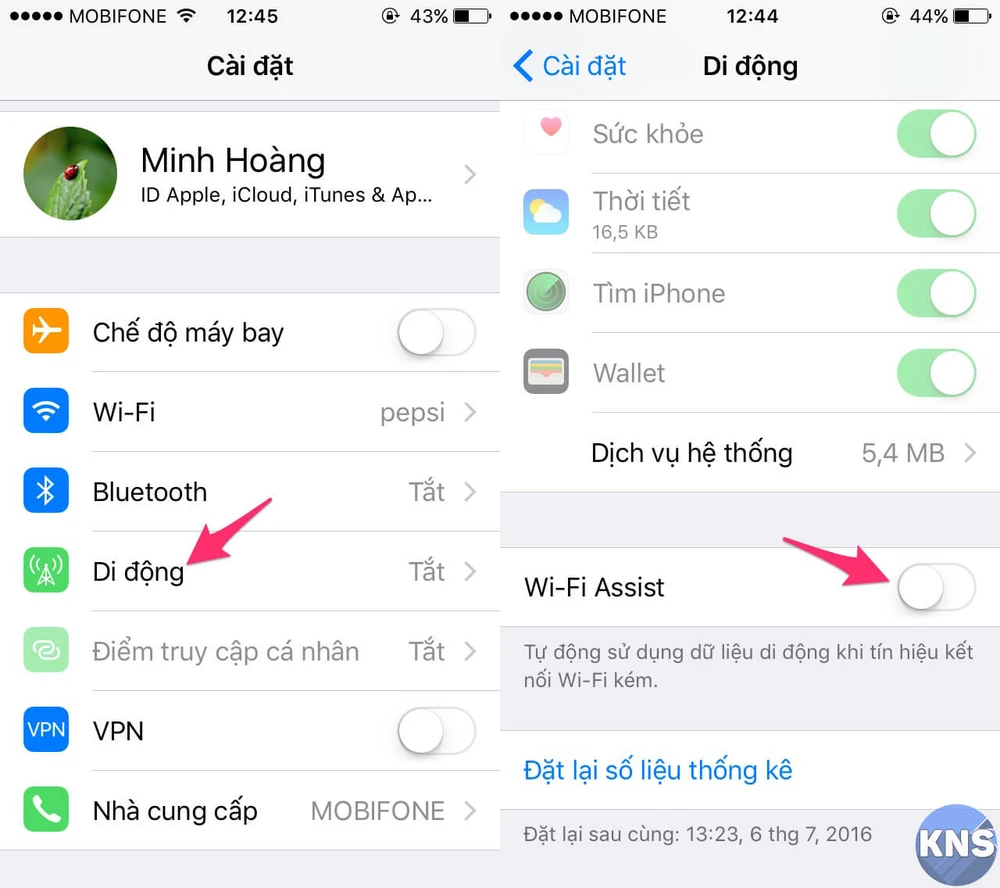 Wi-Fi Assist sẽ tự động chuyển sang kết nối 3G/4G khi phát hiện kết nối Wi-Fi đang sử dụng bị yếu đi. Tuy nhiên, tính năng này sẽ “ngốn” khá nhiều dữ liệu nếu bạn không biết cách kiểm soát. Để vô hiệu hóa, người dùng chỉ cần vào Settings (cài đặt) > Cellular (di động) > Wi-Fi Assist.