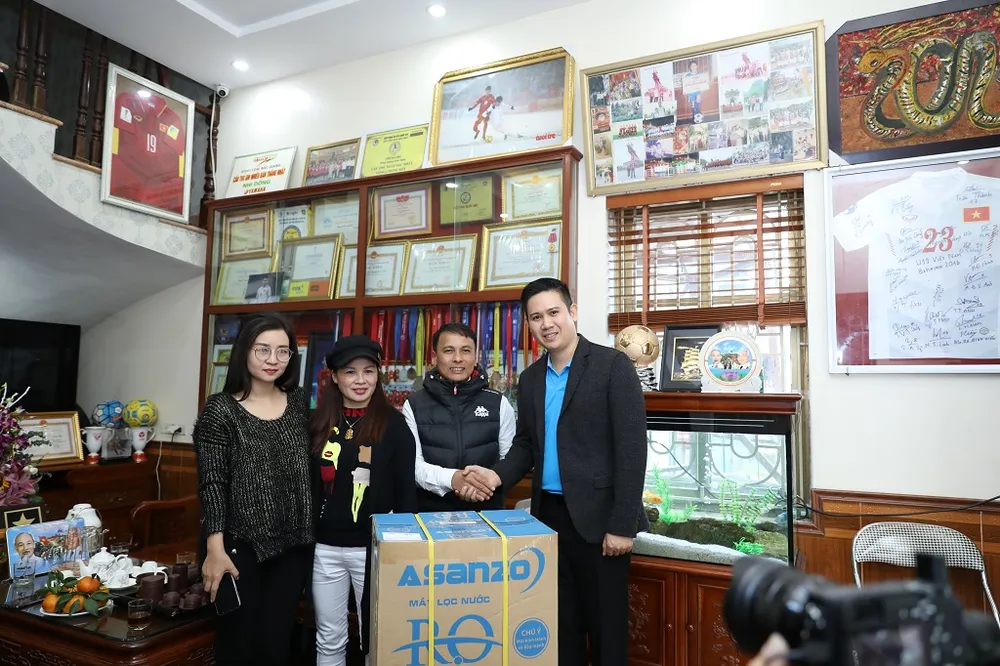 Bên cạnh Quang Hải, hai người con khác của huyện Đông Anh cũng góp mặt trong đội hình của đội tuyển Việt Nam tại giải AFF Cup lần này là Duy Mạnh (xã Liên Hà) và Huy Hùng (xã Dục Tú). Ngoài 30 máy cho các trường học, Tập đoàn Asanzo cũng trao tặng 3 máy lọc nước cho gia đình 3 cầu thủ, cùng một số máy khác cho các phòng ban trên địa bàn Huyện.
