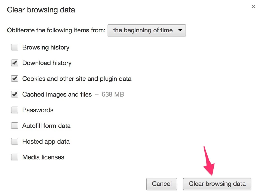 - Bước 2: Tiếp theo, bạn đánh dấu chọn vào các mục Download history, Cookies and other site and plugin data và Cached images and files rồi nhấn Clear browsing data.