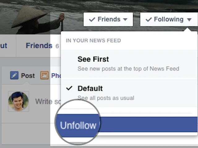 Nếu thấy một người nào đó thường xuyên đăng những thông tin nhảm, nhưng bạn lại không thể bỏ kết bạn (Unfriend), bạn hãy chọn giải pháp ngừng theo dõi (Unfollowing) bằng cách truy cập vào trang Facebook cá nhân của người đó, bấm nút Following và chọn Unfollow.
