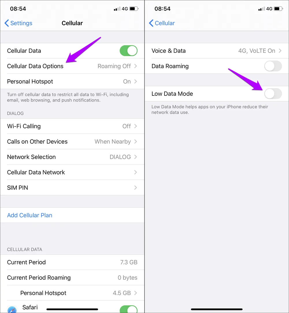 1. Tắt Low Data mode (chế độ dữ liệu thấp)