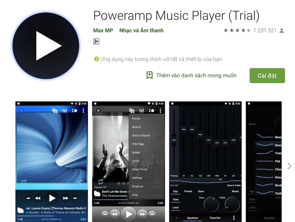 Hiện tại trên Google Play có rất nhiều ứng dụng hỗ trợ phát nhạc và cải thiện chất lượng âm thanh, đơn cử như PowerAMP hoặc Playerpro. Thậm chí, PowerAMP còn cung cấp các tính năng tùy chỉnh nâng cao, tất nhiên, để có thể sử dụng, bạn cần phải nâng cấp lên phiên bản trả phí.