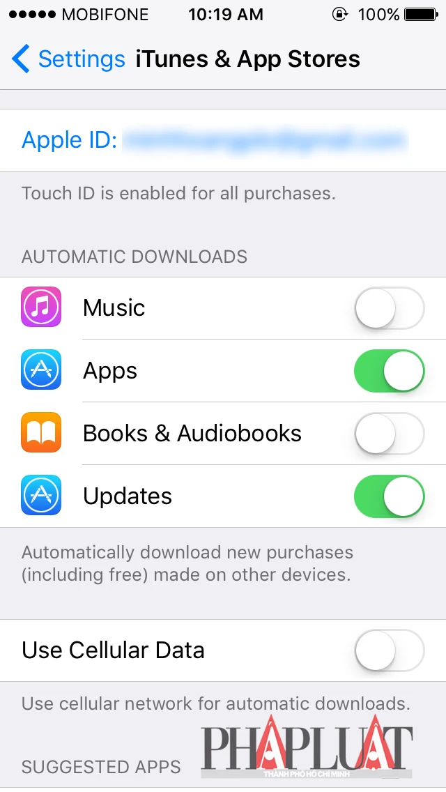 Đầu tiên, bạn hãy truy cập vào Settings > iTunes & App Stores > Use Cellular Data.